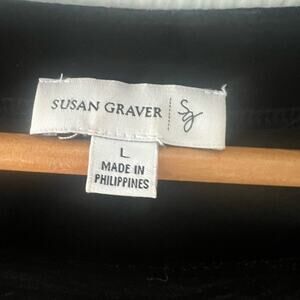 Susan Graver Black Velour Shift Dress Size Large 3/4 Rouch sleeve Stretch