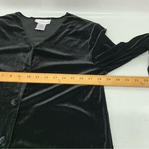 Susan Graver Black Velvet Duster Medium Button Up Stretch Holiday Goth Classic