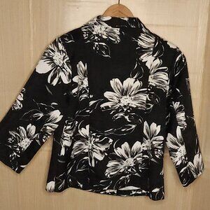 Susan Graver Black White Floral Lightweight Quilted Blazer Medium