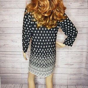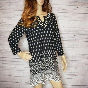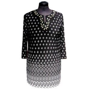 Susan Graver Black & White Long Sleeve Tunic Dress With Embellished Neckline S