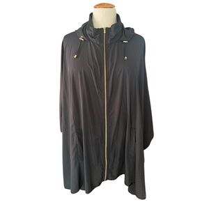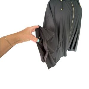 Susan Graver Black Zip-Up Cape Poncho Jacket 2X 3X Hooded Gold Hardware H3