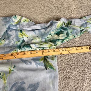 Susan Graver Blouse 3X Blue Green Sheer V Neck Pleated Long Sleeve QVC Flowy
