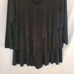 Susan Graver Blouse Black SZ XL Tiered Liquid Knit 3/4 Sleeve