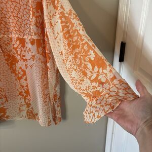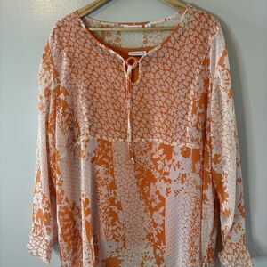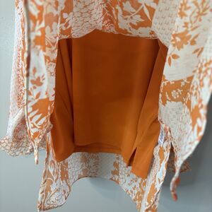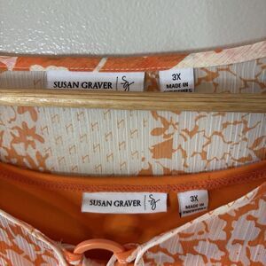 Susan Graver Blouse Tank Set Orange Floral Semi Sheer Top Mature Sz 3X