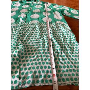 Susan Graver Blouse Woman Kelly Green Polka Dot Semi Sheer Button Up Tunic SZ 2