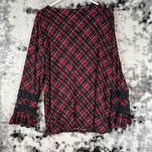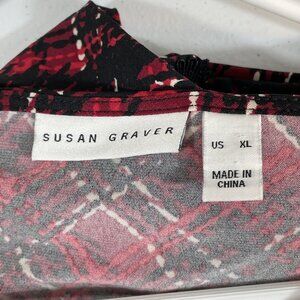 Susan Graver Blouse Womens Size Extra Large Plaid Embroiderd Sleeve Stretch