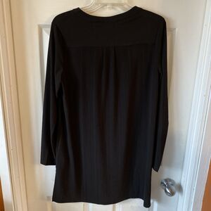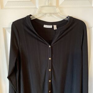 Susan Graver Blouse Women’s Size Medium Black Button Up V Neck