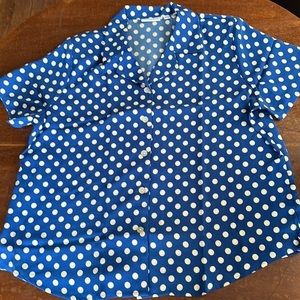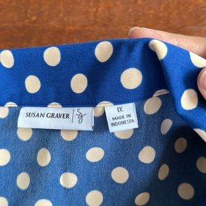Susan Graver Blue Cream Polk Dot Top Size 1X New