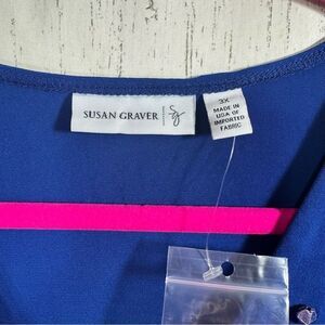 Susan Graver Blue Embellished Tunic Top 3X Plus Size V Neck Jeweled Blouse Glam
