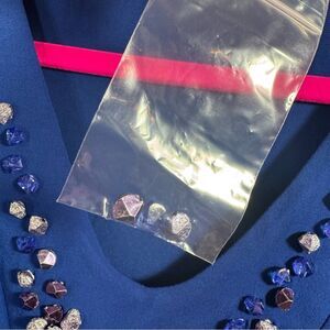 Elegant and eye-catching Susan Graver tunic in a rich royal blue shade. Features a flattering V-neckline adorned with jewel-like embellishments in blue, silver, and purple tones for a sparkling finish. Designed with short flutter sleeves, a relaxed fit, and soft stretch fabric for comfort. Perfect for evening wear, parties, or adding a touch of glamour to your everyday look.