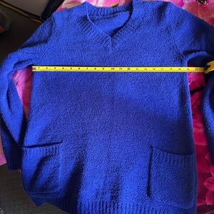 This Susan Graver sweater in a striking blue hue features a classic V-neck and a comfortable knit design. Its long sleeves and relaxed fit make it a versatile addition to any wardrobe, perfect for adding a pop of color to your outfit. Tags of brand are off but you can find it on google. Size is M. Excellent conditions.