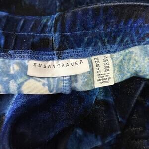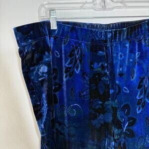 Susan Graver Blue Velvet Pants 2X Pull On Stretch Luxe Soft Wide Leg Elegant
