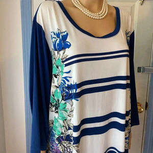 Susan Graver Boho Floral Print Casual Summer Tunic Top Women Plus Sz 3X Stretch