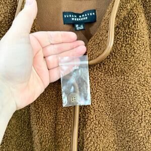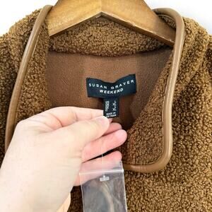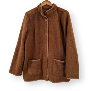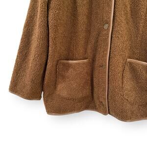 Susan Graver Bonded Fleece Button-Front Jacket Faux Leather Trim Large Brown