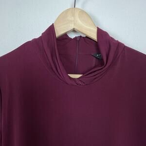 Susan Graver Bordeaux Mock Neck Top M Zip Jersey Knit Long Sleeve Minimalist