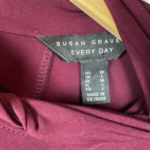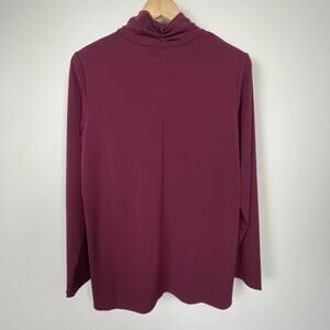 Susan Graver Bordeaux Mock Neck Top M Zip Back Jersey Knit Long Sleeve Minimalist