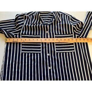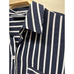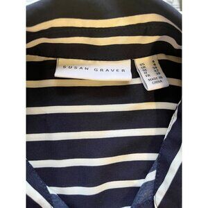 Susan Graver Button Down Shirt Tunic Blouse Hi Low Striped Sheer Coastal Women 4