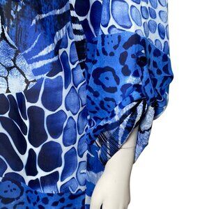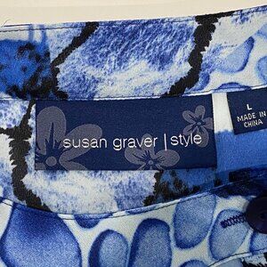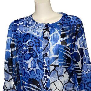 Susan Graver Button Up Tunic Shirt Womens Size L Mixed Print Tab Sleeves Blue