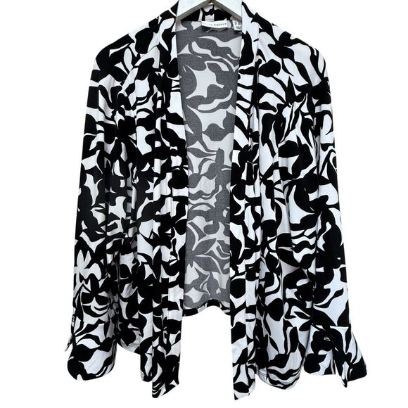 Susan Graver Cardigan Jacket Plus Size 3X Stretch Liquid Knit Black White Open F