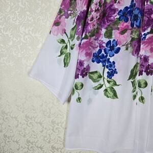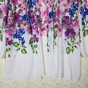 Susan Graver Cardigan Jacket Top sz L White Multicolor Floral Open Front Boho