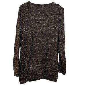 Susan Graver Cardigan Large Womens Sweater Brown Gold Metallic Knit Sequins