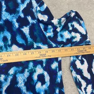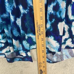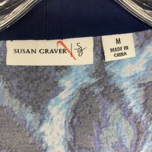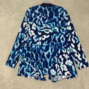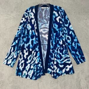 Susan Graver Cardigan Womens M Blue White Knit Open Front Stretch Lightweight