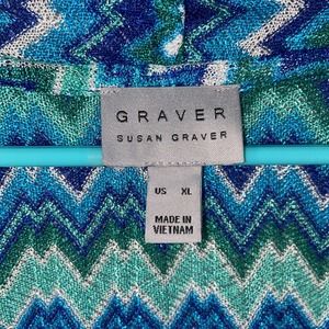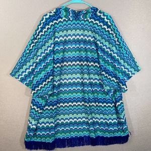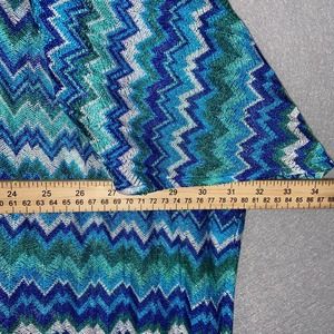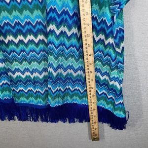 Susan Graver Cardigan Womens XL Blue Green Chevron Kimono Sleeve Tasseled Casual