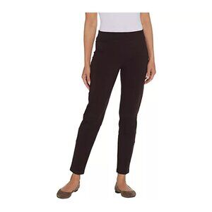 Susan Graver Chocolate Petite Premium Stretch Slim Leg Pull-On Pants Size 1X