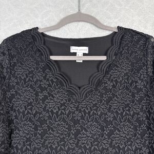 Susan Graver Crochet Lace Top Womens Medium Black Grunge Whimsigoth Witchy Vamp
