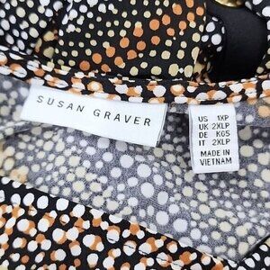 Susan Graver Women's Dress is a sleeveless midi tank dress with a V-neckline and a pullover closure. The dress features a multicolor polka dot print with an adjustable slit and snap accents. It is made of a stretchy polyester-spandex blend that is machine washable. The dress is perfect for travel, party/cocktail, and casual occasions. It is available in size 1XP and is designed for petites. The dress is suitable for summer, fall, and spring seasons.