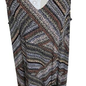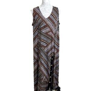Susan Graver Dress Midi Sleeveless Multicolor Print Adjustable Slit Women's 1XP