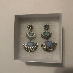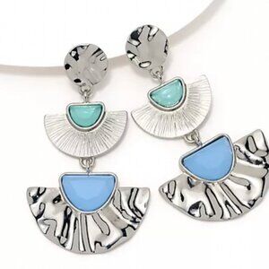 Susan Graver Fan Shaped Hammered Metal Earrings - Blue