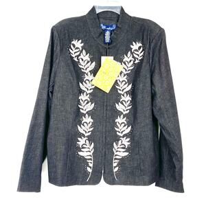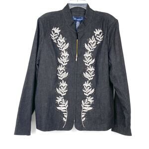 Susan Graver Embroidered Floral Zip Front Jacket Womens XL NWT