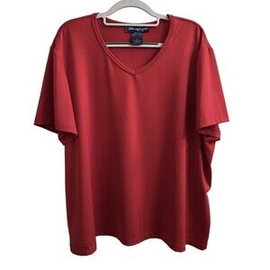 Susan Graver Essentials Red V-Neck Short Sleeve Liquid Knit Shirt Plus Sz 2X