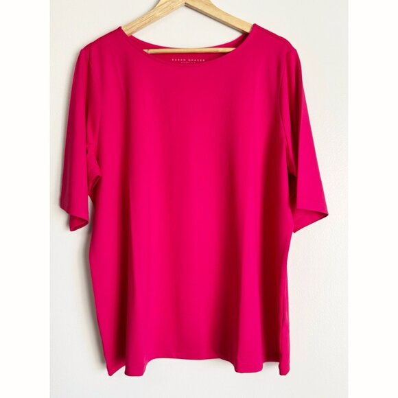 Susan Graver Essentials Women’s 1X Pink Liquid Knit Tunic Top Short Sleeves