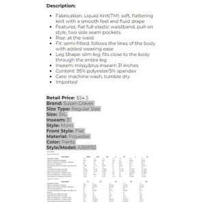 Susan Graver Every Day Women's Pants Sz 3XL with Pockets Black A369150
