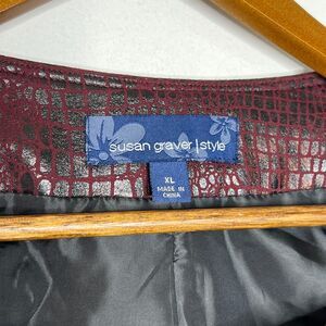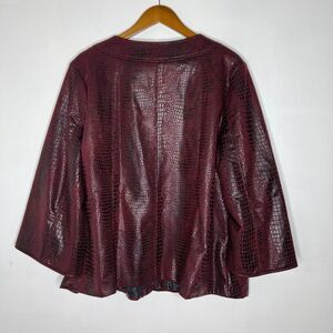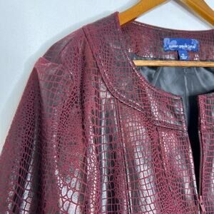 Susan Graver Faux Crocodile Jacket XL Burgundy Open Front Statement Style