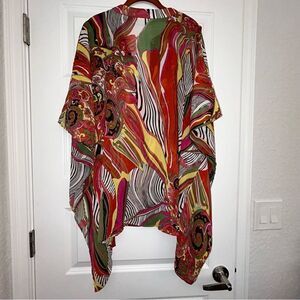 Susan Graver Floral Animal Paisley Print Button Front Kimono Sheer Blouse Top