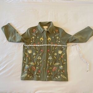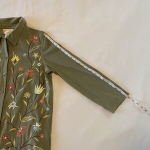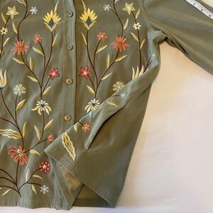 Susan Graver Floral Embroidered Faux Suede Button Front Shirt Jacket Shacket- S