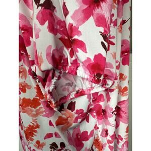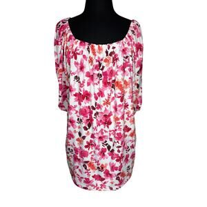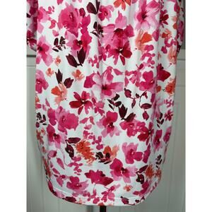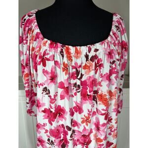 Susan Graver Floral Printed Liquid Knit Square-Neck Peasant Top Pink Size 2X