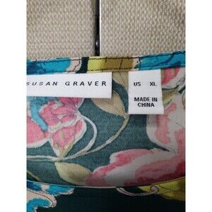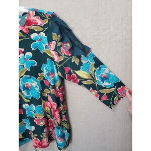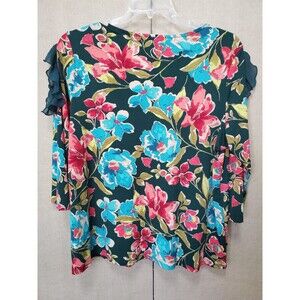 This is a Susan Graver Floral Printed LiquidKnit Top w/Lace & Chiffon Shoulder Detail XL