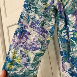 Susan Graver Floral Printed Stretch Lace Peplum Back Tunic Blue Purple Multi 2X