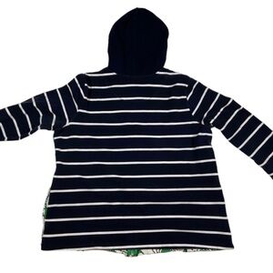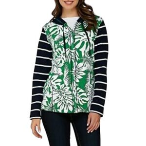 Susan Graver Floral Striped Zip Up Hooded Sweatshirt  1X Large Navy Blue Green