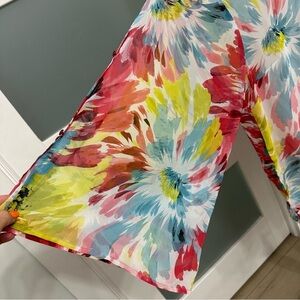 Susan Graver Flowy Sheer Floral Top Wide Cut Out Sleeves Multicolor Size 3X GUC