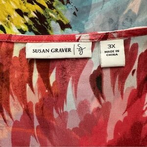 Susan Graver Flowy Sheet Floral Top Wide Cut Out Sleeves Size 3X is in good preowned condition.