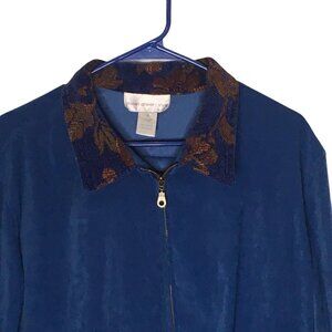 Susan Graver Full Zip Microsuede Jacket Women XL Western Conchos Tapestry Blue