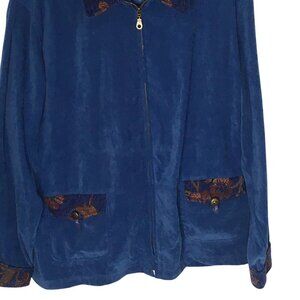 Susan Graver Full Zip Microsuede Jacket Women XL Western Conchos Tapestry Blue A18669