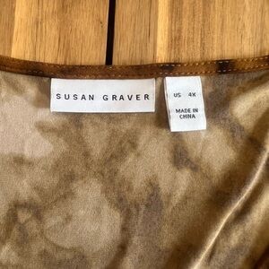 Susan Graver Golden Brown Abstract Printed Liquid Knit Elbow Sleeve Dress Sz 4X