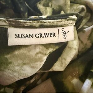 search: susan graver green tunic blouse cowl neck earthy leaf print stretchy top