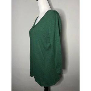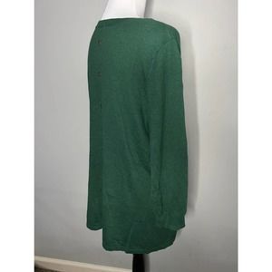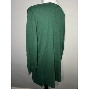 Susan Graver Green V Neck Tunic Sweater Button Back Knit Top Sz M